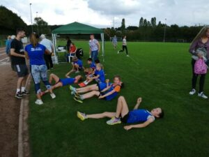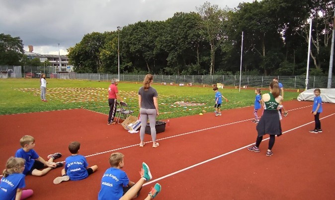 Weiter ging es am 11.09. auf dem St. Ingberter „Wallerfeld“, wo die DJK-SG St. Ingbert diesjähriger Ausrichter eines sog. „KiLa-Wettbewerbs“ war. Die Veranstaltung ist für die „Kleinsten“ im Alter zwischen 6 und 11 Jahren ausgerichtet. Dieser Wettkampfmodus ist bestens geeignet, um das Gemeinschaftsgefüge, die soziale Anbindung und vor allem den Spaß an der Bewegung zu stärken. Aus verschiedensten – teilweise sehr kreativen – Disziplinen, bei denen ausschließlich das ganze „Team“ gewertet wird, kommt es auf Kraft, Geschicklichkeit, Schnelligkeit und die Koordinierung mehrerer Bewegungsabläufe an. Natürlich steht jederzeit der Spaß im Vordergrund. Zu den üblichen leichtathletikspezifischen Disziplinen „Werfen, Springen, Laufen“ wird erst im Alter ab 12 Jahren übergegangen. So messen sich die – teils auch gemischten Teams aus Jungen und Mädchen – beispielsweise der Drehwurf in Zonen, dem Staffellauf über Bananenkisten oder dem Hoch-Weitsprung über eine Querstange, welche nach und nach immer höher gelegt wird.