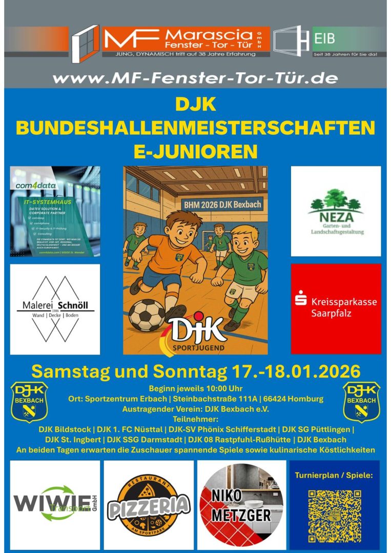 Ein weiteres Highlight war die Auslosung der Gruppen für die im Januar stattfindenden Bundeshallenmeisterschaften der DJK. Das spannende Turnier wird von der DJK Bexbach im Sportzentrum Homburg-Erbach ausgerichtet und verspricht bereits jetzt ein sportliches Highlight zum Jahresbeginn. Die Meisterschaften stehen ganz im Zeichen der DJK-Werte: Gemeinschaft, Fairness und Begeisterung für den Sport. Fußballfans dürfen sich auf spannende Begegnungen und Nachwuchstalente freuen, die mit Leidenschaft und Einsatz um den Titel kämpfen. Beginn ist am 17.01. und 18.01. um 10:00Uhr. Samstags endet das Turnier gegen 18:00Uhr, am darauffolgenden Sonntag gegen 15:00Uhr.